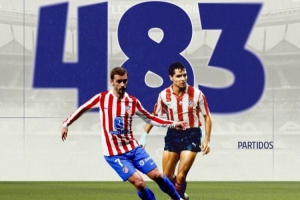 格列兹曼本场首发出战,据马竞官方数据统计,格列兹曼迎来代表马竞出战的第483场比赛,追平托马斯·雷诺内斯,并列队史出场第四多。