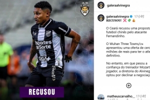 武汉三镇俱乐部为签下这名球员,提出了一份约400 万巴西雷亚尔(约合520万人民币)的永久转会报价。不过,鉴于球队主帅对费尔南迪尼奥的高度信任,塞阿拉俱乐部管理层最终决定拒绝此次转会谈判。
