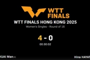 体育资讯12月11日讯 2025WTT中国香港总决赛女单1/8决赛,蒯曼零封早田希娜,晋级8强。
